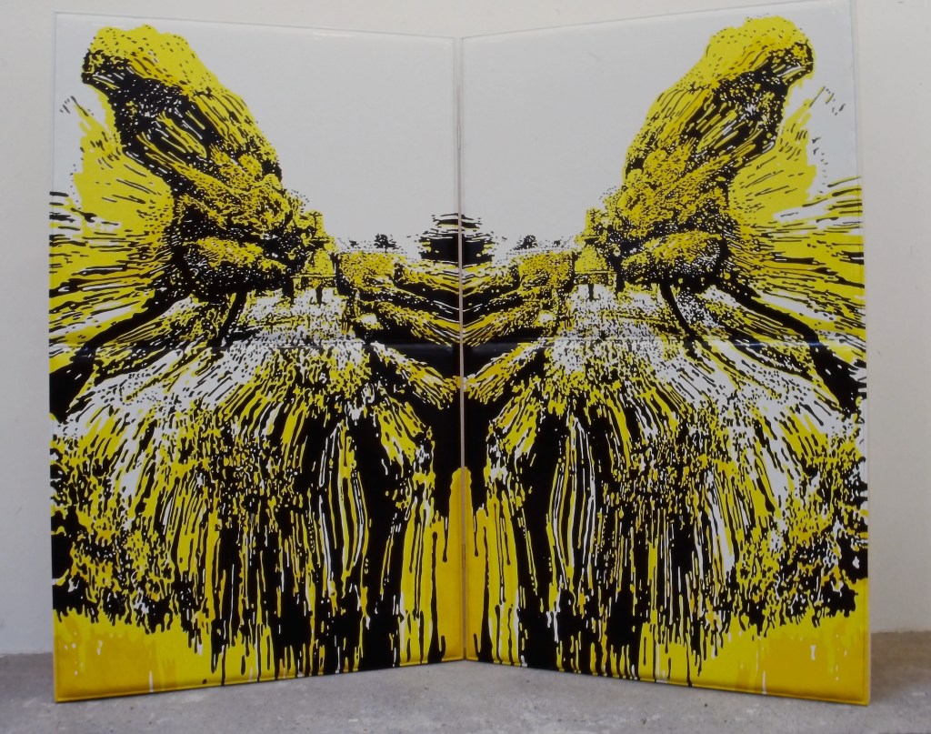 A series of fourteen eight-foot-tall wooden panels, hinged to form screens. These panels were upholstered in white vinyl and painted with scenes of a duplicating and dissolving English garden. The images were derived from a traditional English garden. Drawings from the garden were computer-manipulated in order to heighten the sense of perceptual change that occurred when one location was experienced from different vantage points and in different states of mind. These images enveloped the viewer and intensified the variety of perceptual changes that occurred when one location was over-looked-at.